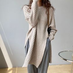 Корейский Асимметричный Однотонный свитер с круглым вырезом