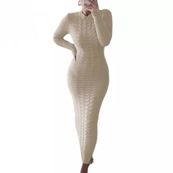 S-3XL Mùa Đông Dày Cao Cổ Áo Len Maxi Dress Phụ Nữ Ren Lên Dệt Kim Dài Ăn Mặc Nữ Dệt Kim Mềm Chất Lượng Cao Ăn Mặc