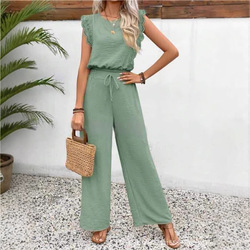 Mùa Hè Phụ Nữ Thanh Lịch Trang Phục Không Tay Ren Rỗng Splice Tamk Tops & Ren Lên Eo Dài Quần 2 Mảnh Thiết Lập Giản Dị Bộ Kỳ Nghỉ