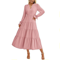 Mùa Thu Thanh Lịch Thời Trang Mỏng Phù Hợp Với Quần Áo Nữ Lỏng Lẻo Giản Dị A-Line Váy Rắn V Cổ Cao Eo Dài Tay Áo Dresses